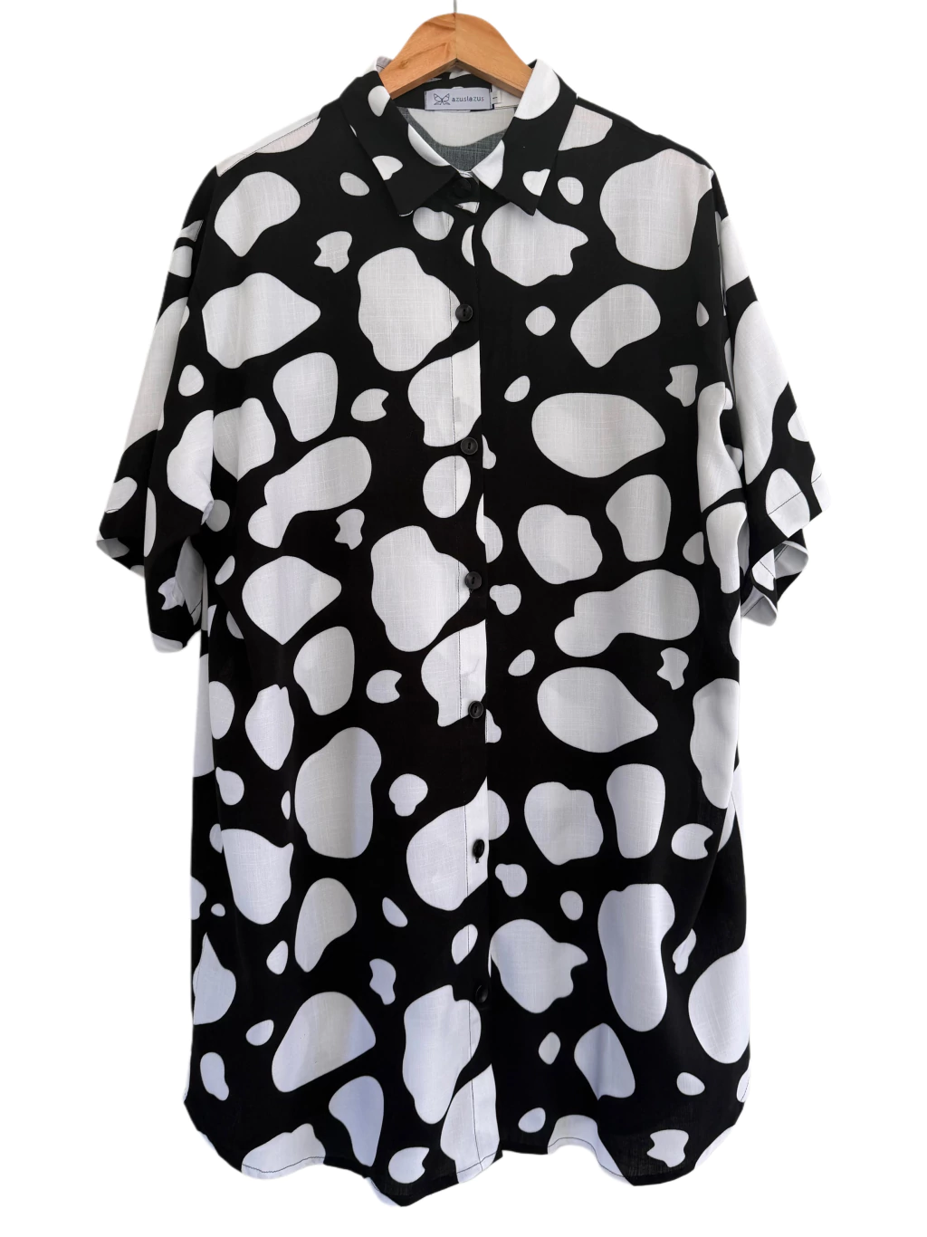 A estampa preta e branca é tão divertida que até seus botões coloridos vão sorrir! Vista o Camisão Moozi e seja o protagonista do seu estilo casual.